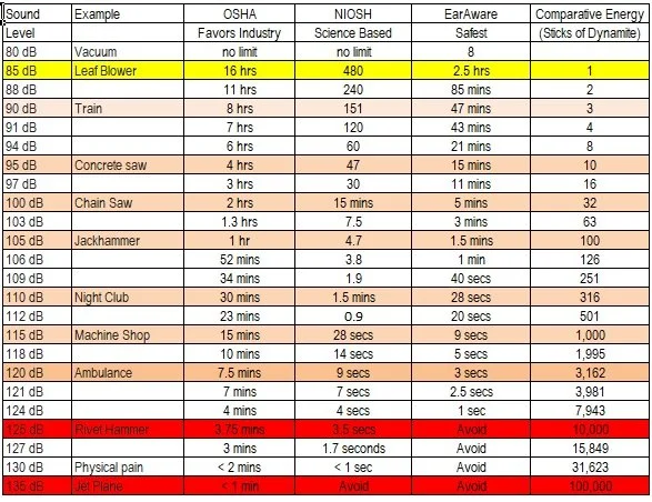 This better reflects the reality that each 3 dB increase doubles sound energy. Safe exposure times under NIOSH:
